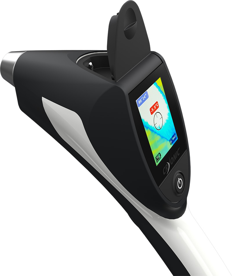A simple pressure allows to visualize the screen and to obtain a thermal vision. Higher pressure triggers projection of CO2 microcrystals.